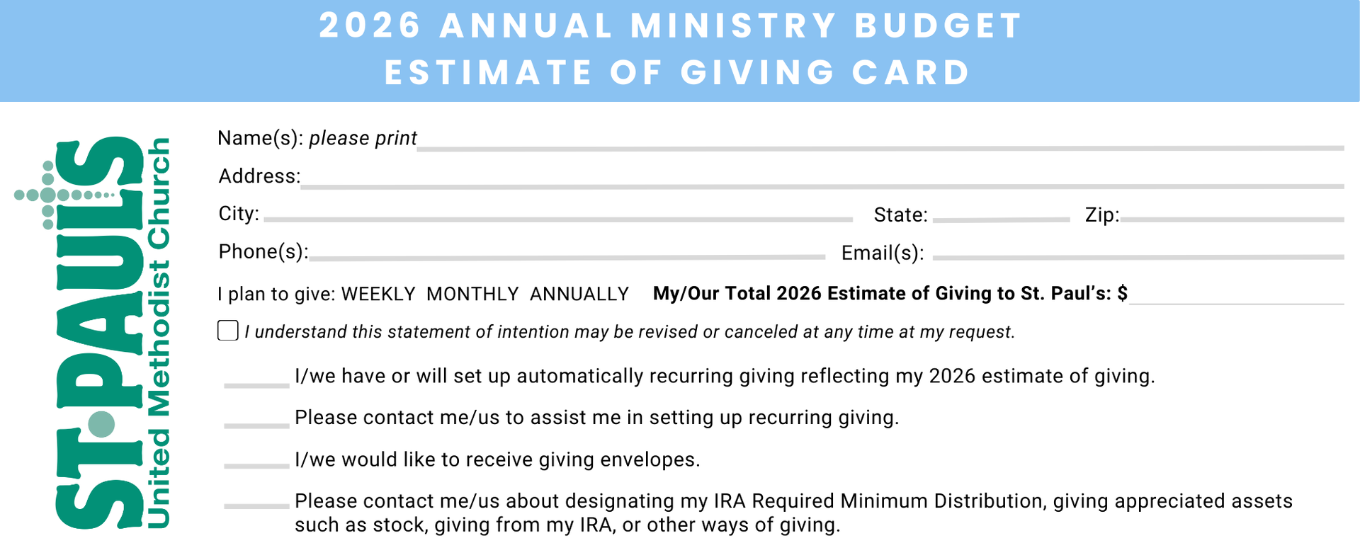 At St. Paul’s United Methodist Church, we believe that generosity is at the heart of who God calls us to be.